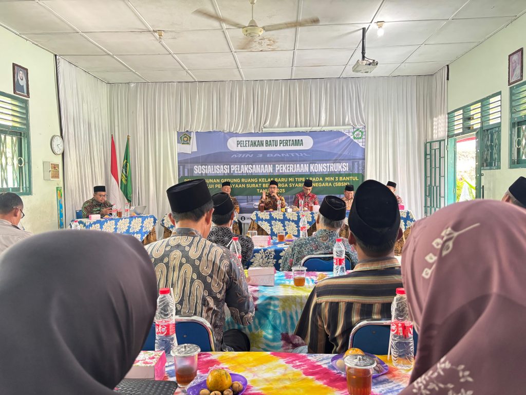 Bantul (MIN 3 Bantul). Sebagai wujud untuk meningkatkan pelayanan publik, maka Kementerian Agama berkomitmen untuk terus meningkatkan berbagai aspek penunjang pendidikan, terutama sarana dan prasarana. Oleh karena itu, pada tahun 2025 ini dengan pembiayaan dari Surat Berharga Syari’ah Negara (SBSN), MIN 3 Bantul sebagai salah satu institusi pendidikan di bawah Kementerian Agama mendapatkan gedung ruang kelas baru berjumlah 6 rombel.
